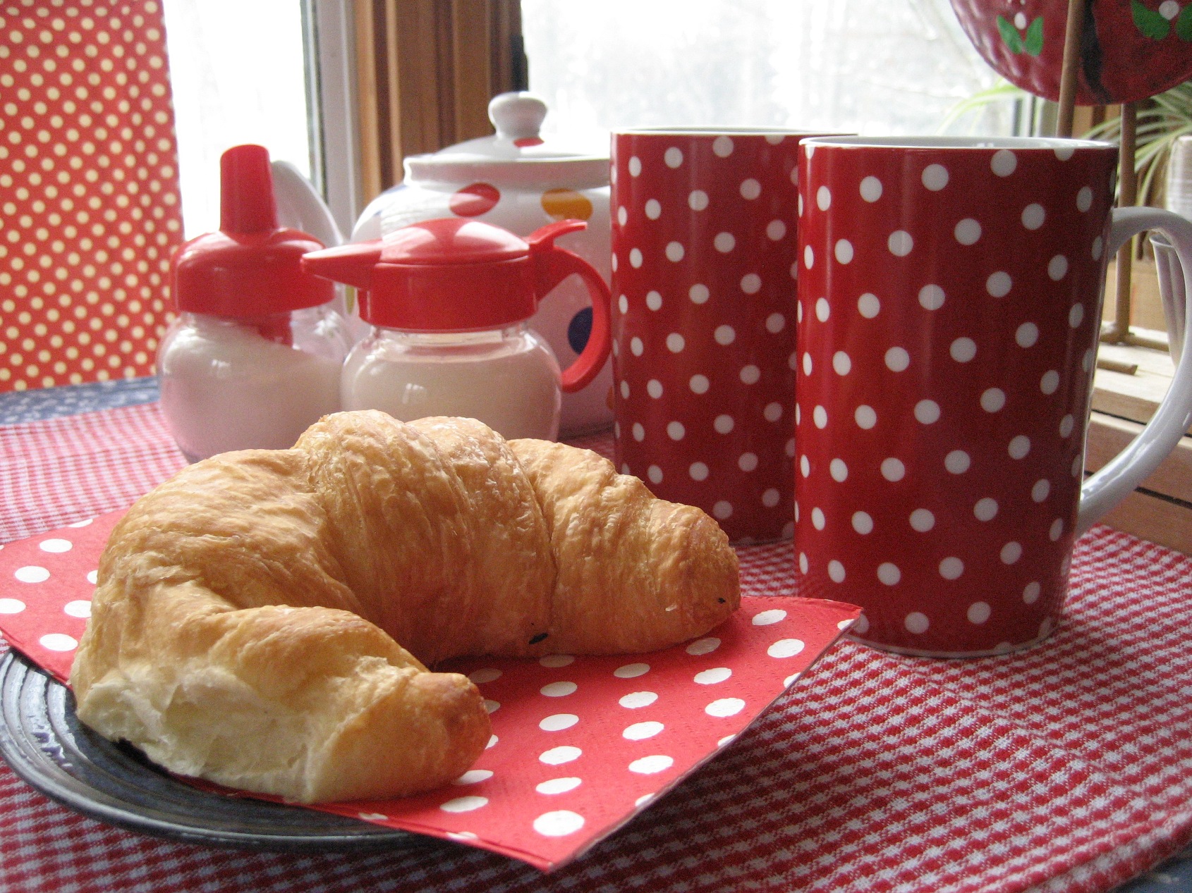 I love my polka dots! The mugs remind me of some expensive ones I have seen, but they are from the dollar store! Come to think of it so is the tray you can see in the background and the napkins… I find lots of polka-dotty goodness at the Dollar store.