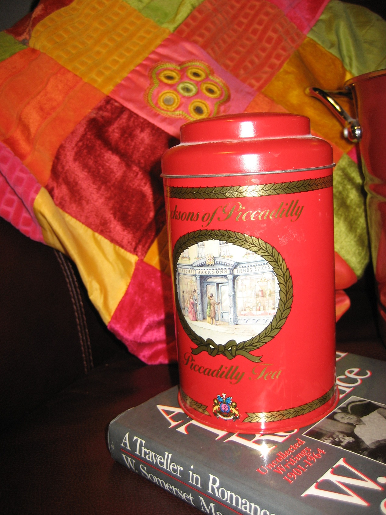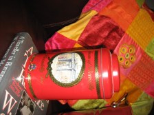 The two little tins are sweet. Sorry about the glare, I will get better at these photo shoots. The red one says Jacksons of Piccadilly Tea. I plan to keep tea in it … the other one is just too cute and was 50 cents, maybe good for little sewing things.