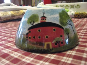 And how could I resist this cute little candle holder with a wee red barn on it?