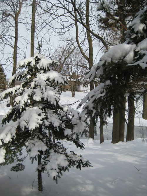 The snow came down Friday night. It was sticky snow that clung to everything and frosted the branches.