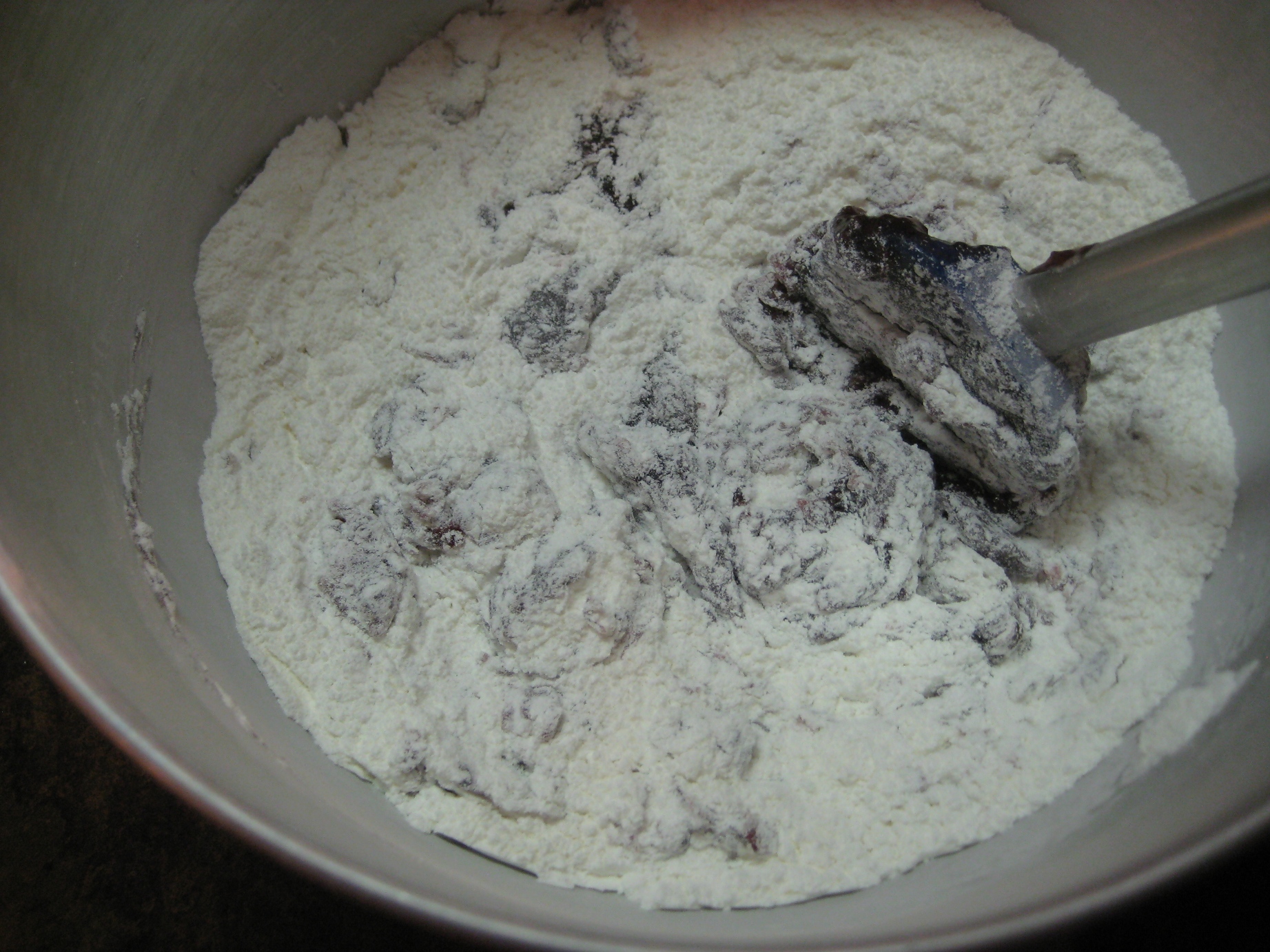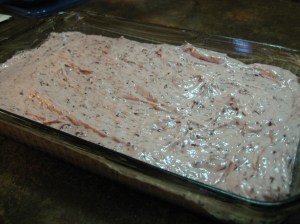 But it did mix in and became a pink batter that filled a 9 x 13 greased pan.