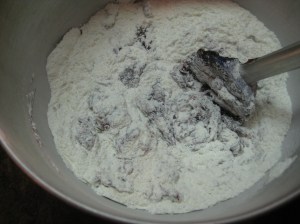 I was getting worried at this stage, would the batter be dry with lumps of pie filling every so often?