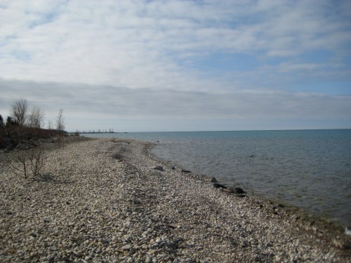 I had a little time to myself this morning and thought I would take a drive down to the beach. This beach is at Goderich Ontario and is beautiful any time of the year. There are many sections and lots of different types of beach to walk, or stroll, or swim (just not at this temperature). The sandy cove is busy in the summer but since I had no intentions of going for a dip in the frigid waters of Lake Huron, I opted for the rocky part. I love beach rocks. I aimed for the big rock next to the water and sat for a while.
