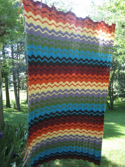 It seems like a long time ago I started the ripple blanket. I was just going to use up some scraps from Miss Murfin’s Christmas afghan and whip up a little lap blanket.