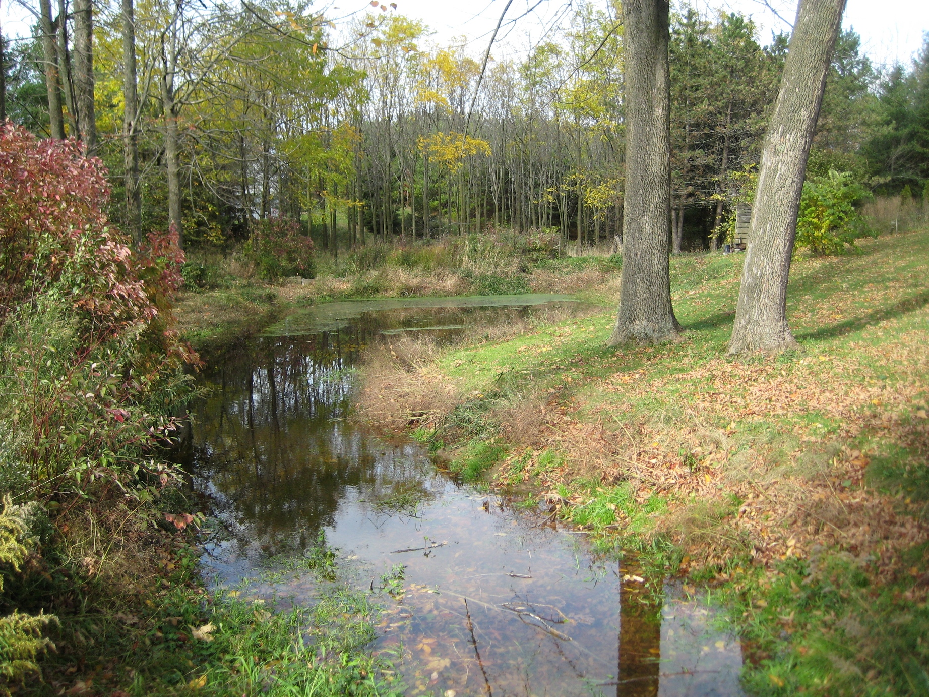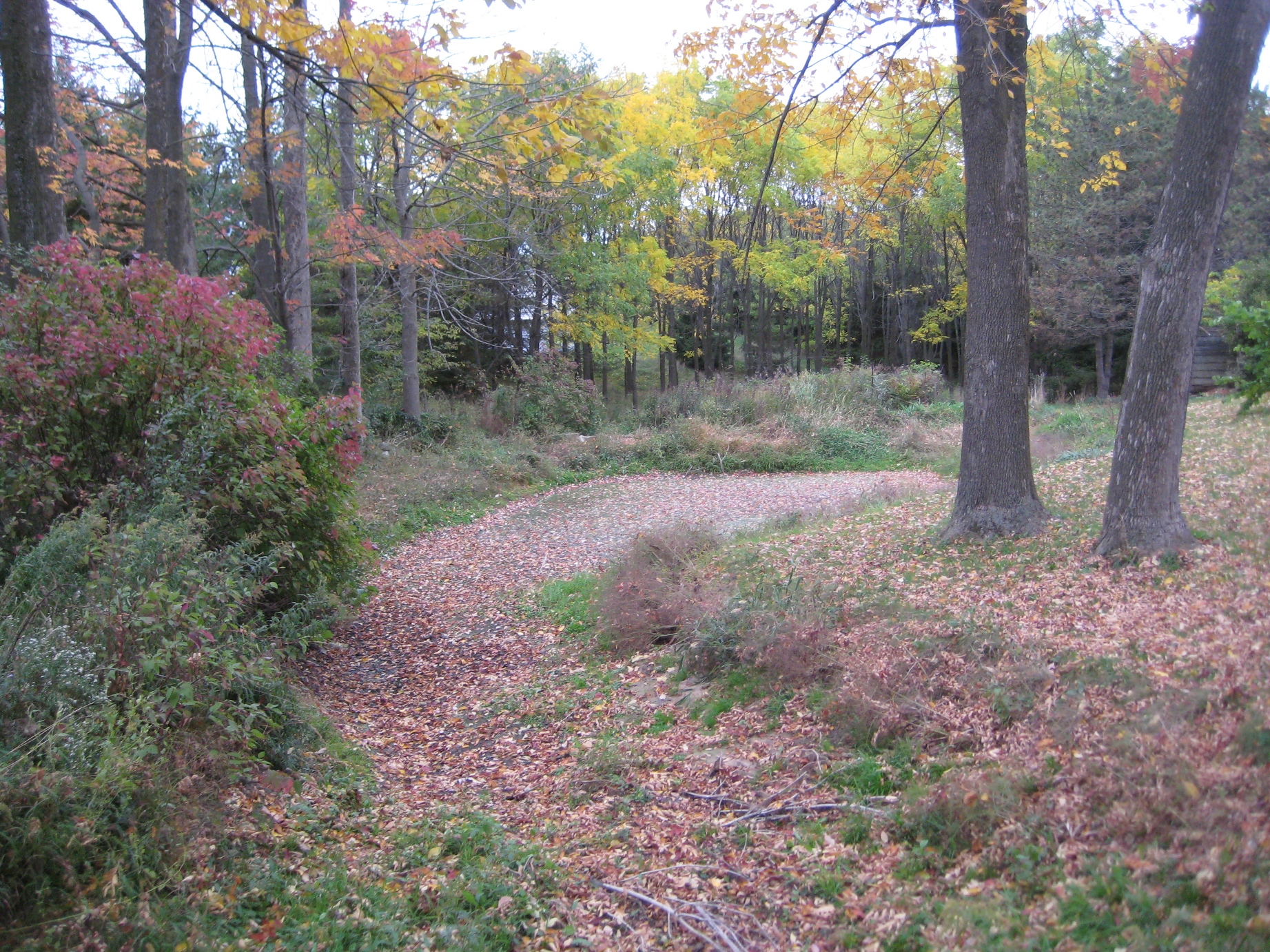 The air is crisp, the ground is crunchy. We had a very dry summer and it has changed the landscape this fall. For most of the summer the pond was, well, more of a puddle. Here is what it looked like last week, very little water, lots of leaves.
