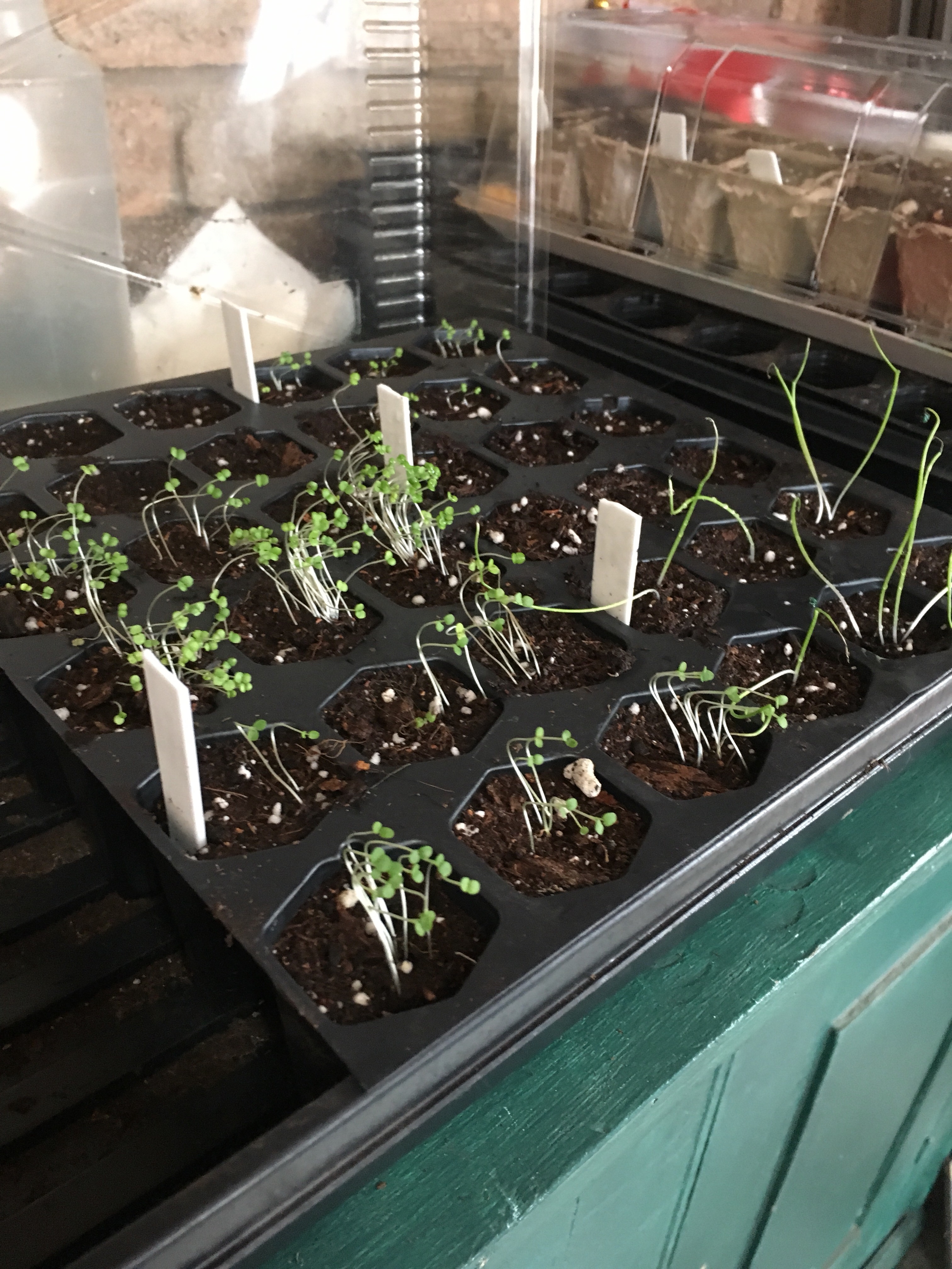But most exciting of all are the little sprouting plants in the sun room. It’s been hard to know when to start things as winter has been lingering, but the temptation was too great.