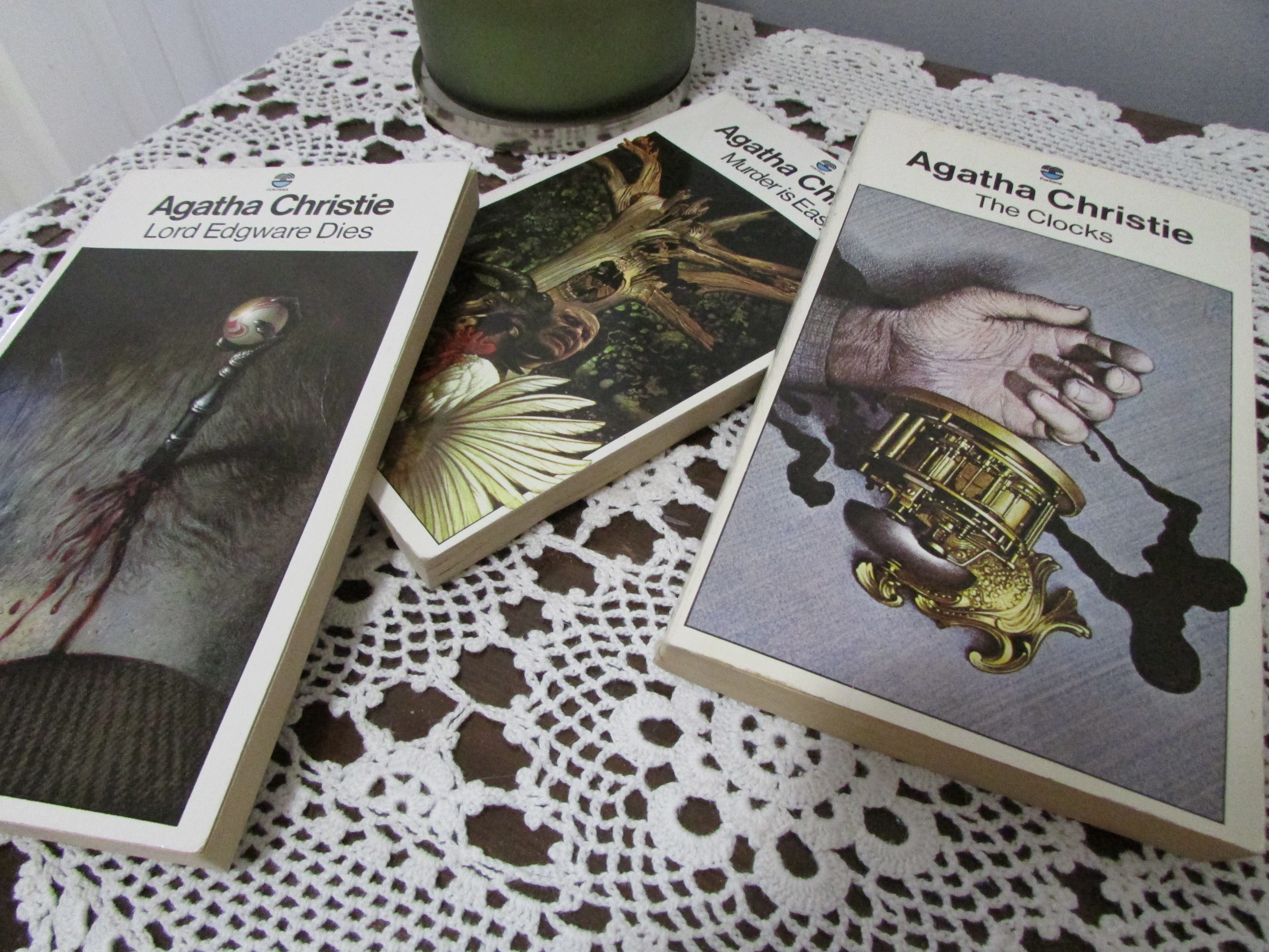 So these are my Agatha shelves. I have plans to re home them on to a proper book-case one day, but for now it s more important to keep them together. Is it sad that I take so much care to shelve them chronologically?
